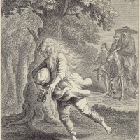 [Don Quixote fights the goatherd]