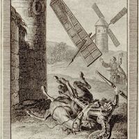 Fatal suceso de la batalla de D. Quixote con los imaginados gigantes