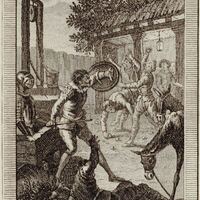 Castigados los arrieros que no respetaron las armas de D. Quixote quieren otros vengarlos