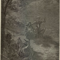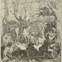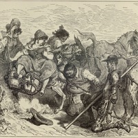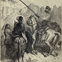 Au milieu d'eux Don Quichotte, monté sur Rossinante, leur faisait un sermon pour leur persuader d'abandonner ce genre de vie