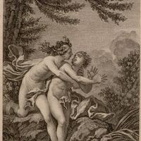 La ninfa Salmacis abraza al joven Hermafrodito que estaba en el bano