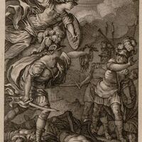 Perseo presenta la cabeza de Medusa a Atlante, que al verla queda transformado en montana