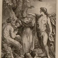 Apolo pone orejas de asno a Midas en castigo de su mala sentencia