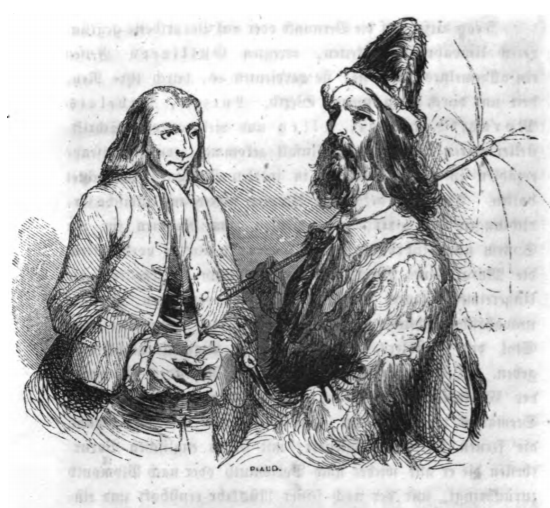 This image is a depiction of Gulliver and Robinson Crusoe. The story of Robinson Crusoe is referenced several times throughout Gulliver’s Travels. Gulliver was frequently compared to Robinson Crusoe as the two were both sailors who traveled the world. Robinson Crusoe was written by Daniel Defoe and published in 1719, seven years before Swift published Gulliver's Travels. The image is a part of Swift’s Biography which precedes Part One of Gulliver’s Travels. The purpose of this illustration in the biography is to provide context for the political atmosphere and insight into Swift’s satirical writings. The same image appears in the 1843 Krabbe edition.