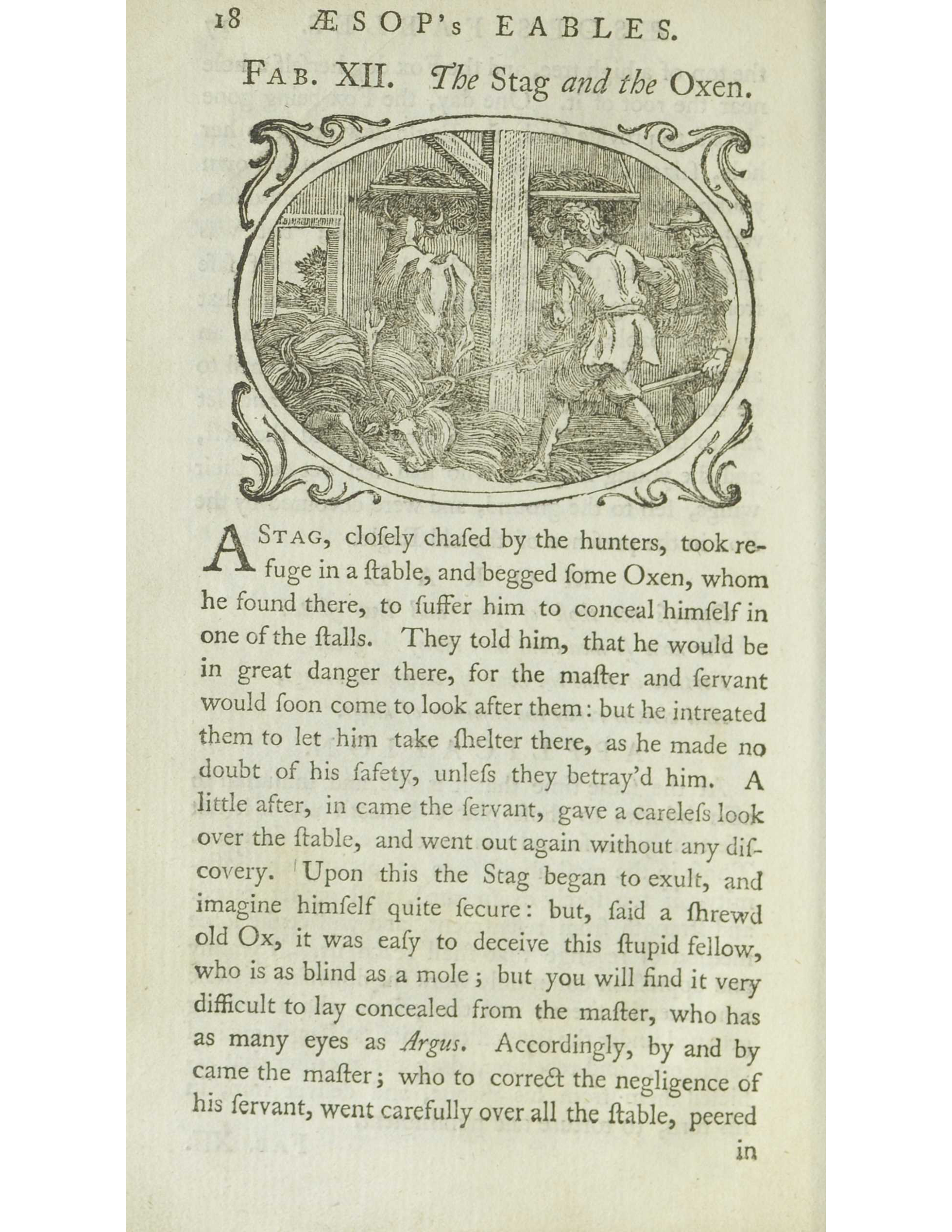 The Stag and the Oxen. Other Titles: The Stag in the Ox-Stall