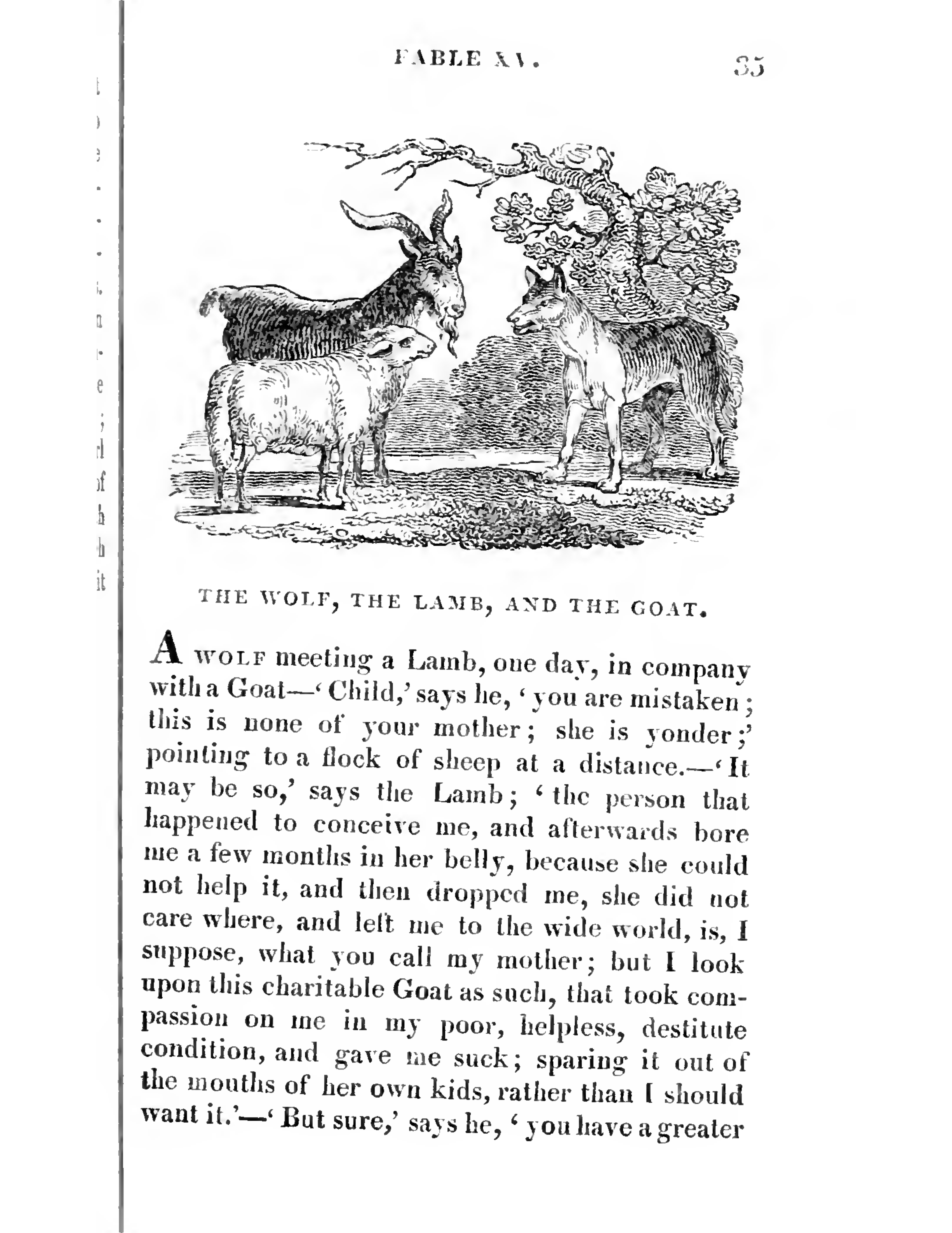 A Wolf encountered a Lamb with a Goat in the forest. Wolf was hostled towards them as he was telling the Lamb that the Goat was not his mother. The Goat remained calm and indifferent when facing his judegment. The Lamb stood firmly in fornt of the Goat and explain the situation. The Lamb firmly believed the effort the Goat dedicated to bring him up proved her as his mother.