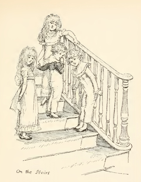 In this image we see the Gardiner children, Lizzy and Jane Bennet’s cousins. Jane was going with her aunt and uncle Gardiner to London. This trip was proposed to help Jane recover from the heartbreak of Mr. Bingley’s sudden departure. This scene occurs in chapter 27. The characters are shown in the traditional regency style. The girls’ dresses have empire waists and the boys wear short coats and breeches. The regency period dated to the early nineteenth century (1811-1820) when George, Prince of Wales, later George IV (r. 1820-1830), reigned as regent for his mentally ill father, King George III (r. 1760-1820). The regency period is associated with the rise of neoclassicism in art and fashion.
