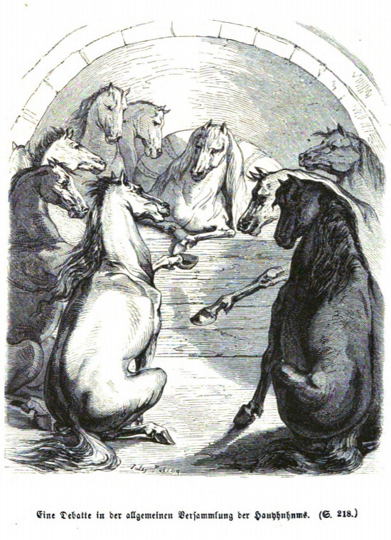 Eine Debatte in der allgemeinen Bersammsung der Houyhnhnms. (S. 218)