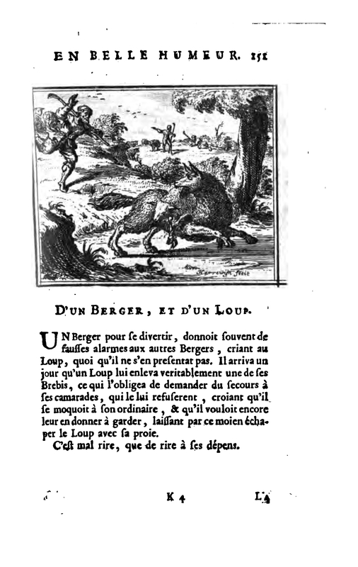 A young shephard found life in the pasture very dull. He thought up a plan to amuse himself. His master told him to call for help if a wolf attacks the flock, and the villagers would drive it away. So, though he had seen no wolf, he ran to the village crying Wolf! Wolf! The villagers ran to assist but found the boy laughing at the trick he had played on them. A few days later the boy again called to the villagers, and again came to help, only to be laughed at. Then one day a wolf really did come to kill the sheep, and the boy ran to the village shouted Wolf! Wolf! But the villagers did not run to help him, as they thought it was another trick. The wolf killed many of the sheep and got away.