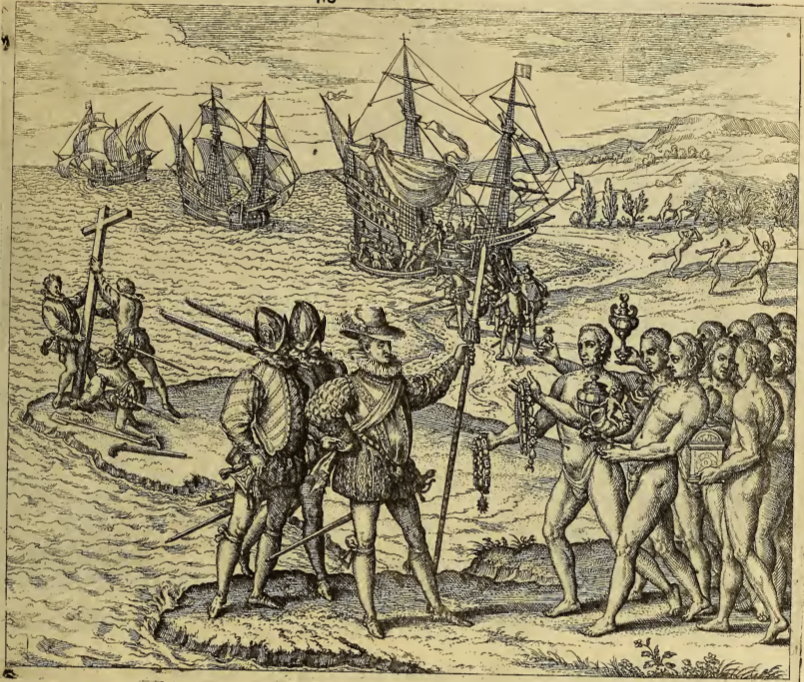 Columbus als er in India erstlich ankommen, wirdt von den Einwohnern mit grossen Geschenk verehret und begabet auffgenommen.