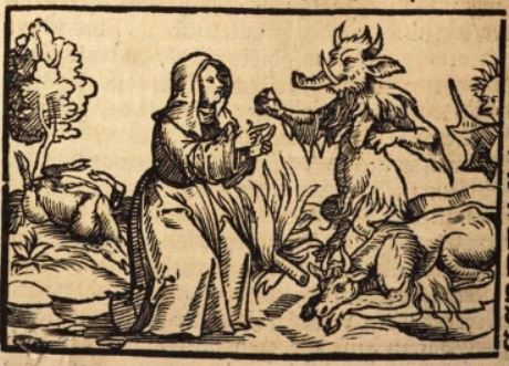 This engraving depicts Manto, the daughter of the famous seer Tiresias. She is depicted with her body leaning over a burning fire and looking at a creature with the head of a boar. Boccaccio explains that Manto became an incredible seer just like her father. She used the movement and colour of the fire’s flames to tell the future, which is why there is a fire in the engraving. She also used the entrails of animals such as sheep and oxen for signs of the future. There is an ox on the right side of the image and a sheep on the left, both dead. The ox has its organs sticking out from its body. The distinct looking creature that Manto is looking at represents her involvement in the dark arts and summoning spirits and gods from the underworld.