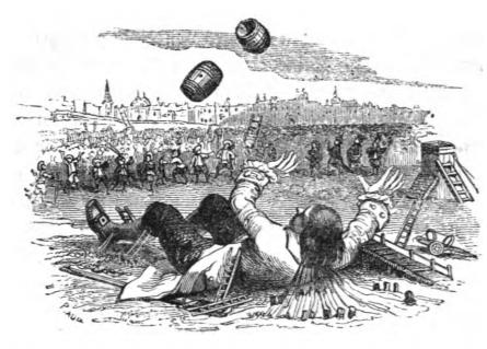 [Gulliver throws empty barrels]
