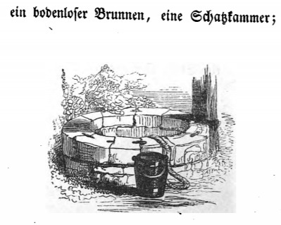 This image shows a bottomless pit, which is the code word for the treasury. This image comes in a description of a conspiracy found by a professor from the Grand Academy on Balnibarbi. This idea is representing code word for terms in the conspiracy that Swift is satirizing. The professor advises that those named in the conspiracy papers be closely monitored at all times, naming specifically while they were using the bathroom, as this is when men were most thoughtful. This conspiracy is thought to be an allusion to the trial of Francis Atterbury, the bishop of Rochester for allegedly plotting with the Jacobites. Atterbury was charged with treason in 1722 and was exiled to France. The same image appears in the 1839 Krabbe edition.