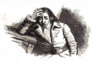 [Gulliver looking alarmed after hearing his sentence from the Lilliputians]