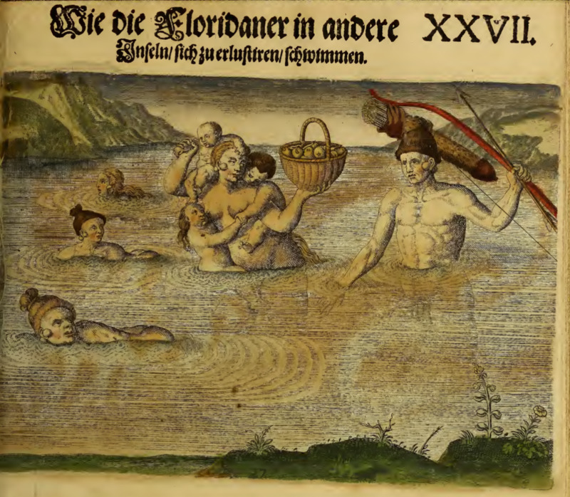 Wie die Floridaner in andere Inseln, sich zu erluftigen, schwimmen. XXVII.