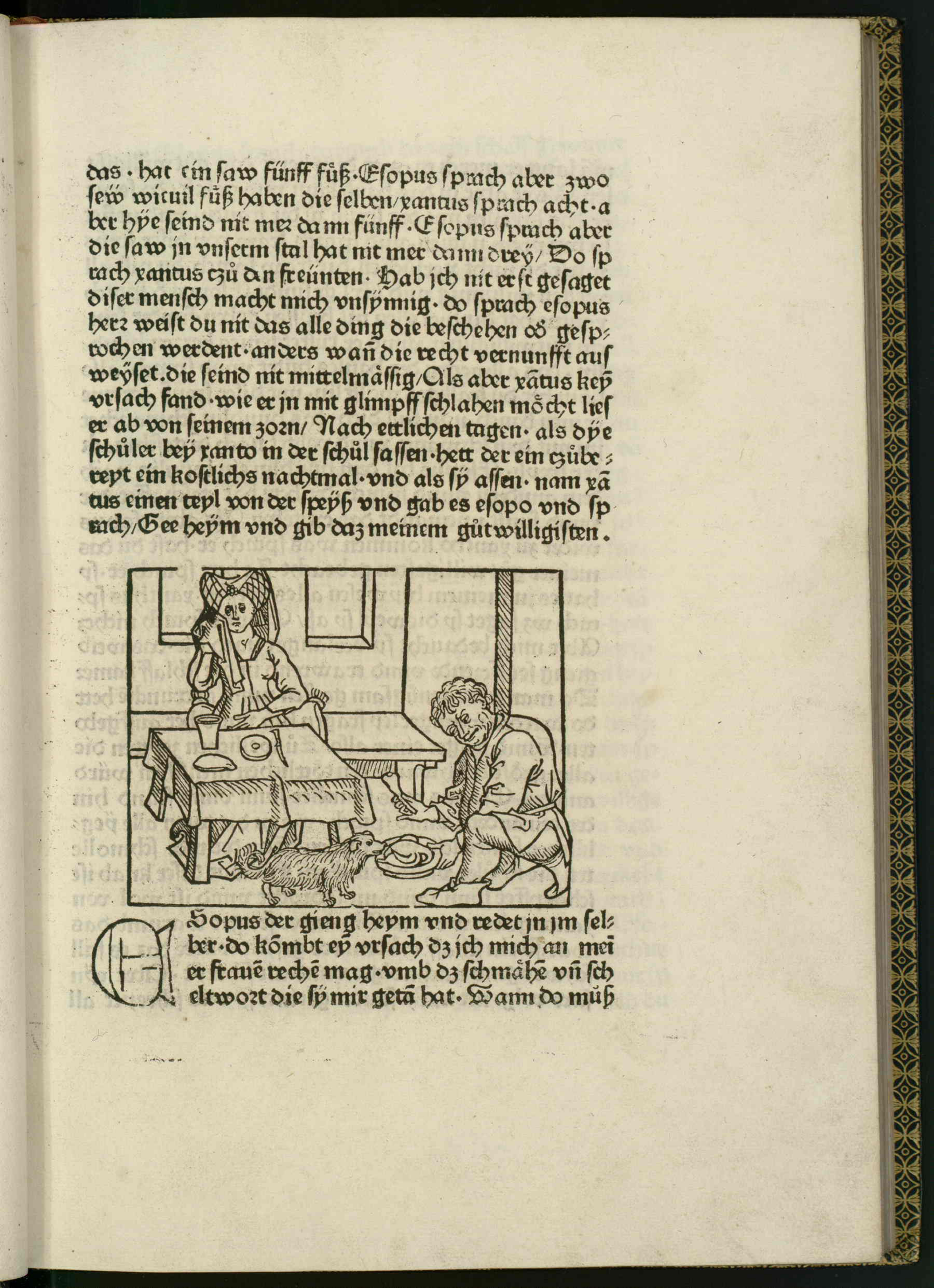 Vita et. Fabulae [A man feeds a dog as a woman sits at a table]