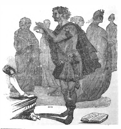 Here we see Gulliver and the Governor of Glubbdubdrib, who was a necromancer. After speaking with Alexander the Great, the Carthaginian General, Hannibal appeared. Hannibal assured Gulliver he did not have any vinegar with him when he crossed the Alps. The Roman historian Livy wrote that Hannibal softened the rock of the Alps by pouring vinegar over them and letting them soften in the sun, making their demolition much easier. The same image appears in the 1839 Krabbe edition.