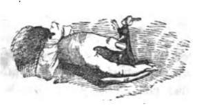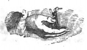 [The Lilliputian Secretary of the Emperor’s private affairs stands in Gulliver’s hand]