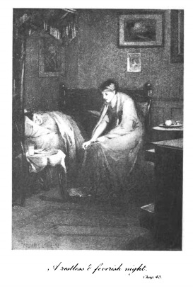 Here we see Marianne lying ill in bed at Cleveland estate as Elinor sits by her bedside. Elinor and Marianne left London with Mrs. Jennings to go to Cleveland, the estate belonging to Mrs. Jennings' daughter and son-in-law, the Palmers. Marianne spent most of her time going for walks, and one day she was caught in a storm and got her feet wet. This resulted in her becoming quite ill, developing an infection. She spent several days sick in bed, culminating in a night where she was overcome with a terrible fever. Elinor was very concerned and sent Colonel Brandon to fetch her mother from the cottage near Barton Park. Marianne was given medicine by the apothecary in town and her fever broke and she recovered quickly. This scene occurs in chapter 42 as noted underneath the title of this image. The characters are shown in the traditional regency style, with Elinor wearing the regency style dress with an empire waist. Her hair is worn tied up, as was tradition for women after their “coming out” before the queen, signaling her entrance into society. The regency period dated to the early nineteenth century (1811-1820) when George, Prince of Wales, later George IV (r. 1820-1830), reigned as regent for his mentally ill father, King George III (r. 1760-1820). The regency period is associated with the rise of neoclassicism in art and fashion. The same image appears as an insert between pages 140 and 141 for the Dent 1893, 1894, 1895, 1896, and 1897 editions of Sense and Sensibility.