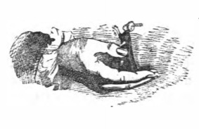 [A Lilliputian secretary stands on Gulliver’s hand]