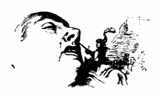 [A Lilliputian guard sticks his sword in Gulliver’s nose]