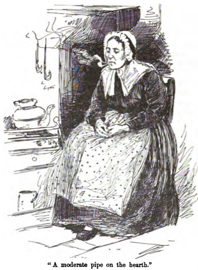 Here we see Grace Poole sitting by the hearth in her third-floor apartment in Thornfield. She was responsible for caring for Mr. Rochester’s mentally ill wife. Jane was unaware of this and was very suspicious of Grace Poole, blaming her for the suspicious activity going on in Thornfield, specifically the fire in Mr. Rochester’s room.