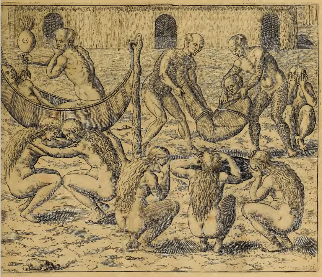 [Tupinambá people tend to their sick, bury their dead, and mourn]
