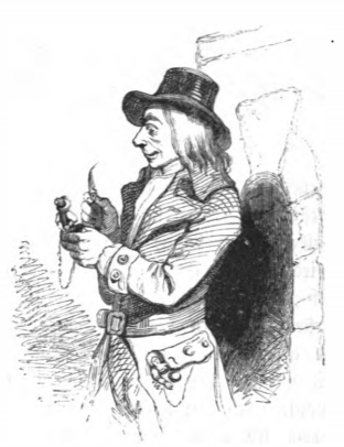 In this image, we see Gulliver standing next to a door of the castle smoking a pipe while talking to a Lilliputian. Gulliver’s size is shown by the height difference between the door and Gulliver. Gulliver holds a pipe in his right hand, and a Lilliputian in his left hand. The same image appears in the 1839 Krabbe edition.