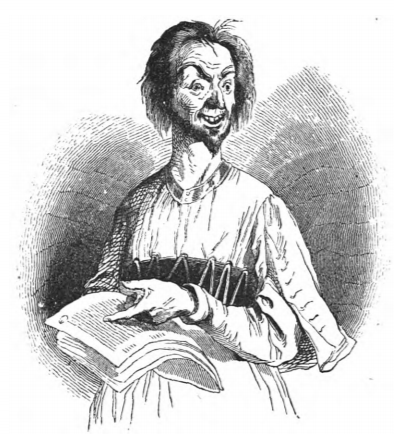 Here we see a professor from the Grand Academy on Balnibarbi holding a stack of papers that had details about a conspiracy against the government. The professor advises that those named in the papers be closely monitored at all times, naming specifically while they were using the bathroom, as this is when men were most thoughtful. This conspiracy is thought to be an allusion to the trial of Francis Atterbury, the bishop of Rochester for allegedly plotting with the Jacobites. Atterbury was charged with treason in 1722 and was exiled to France. The evidence used against him were papers found in his close-stool. Many believe this evidence to have been fabricated. The same image appears in the 1839 Krabbe edition.
