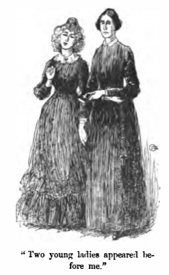 Here we see Jane’s cousins, Eliza and Georgiana Reed. This scene happens when Jane returns to Gateshead Hall at her aunt’s request. Jane’s aunt Reed asked to see Jane and one of her servants came to Thornfield to bring her back to Gateshead. Georgiana stands on the left and Eliza on the right.