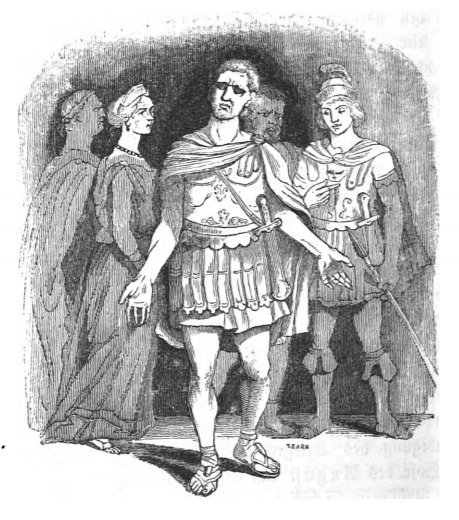 One of the men who appeared before Gulliver was the commander of a ship who fought at the Battle of Actium in 31 BCE when Octavian (later Augustus) defeated Marc Antony and Cleopatra. The commander was quite successful at the battle, however, he was overlooked by Augustus when it came time to appoint a commander of a greater ship. This position went to a young man who waited on one of the Emperor’s mistresses, showing the corruption of Augustus’ court, like many other courts throughout history. The commander was charged with neglect of duty after he asked to be promoted, and he retired to a poor farm outside Rome. His ship was then given to a favourite page of the Vice-Admiral. The commander’s son who was killed at the battle appears with the commander. Intrigued by the story of this commander, Gulliver called upon Agrippa, a friend of Octavian and the admiral at the Battle of Actium, who confirmed this story. Agrippa’s version of the story paints Octavian in a much more favourable light, however. The same image appears in the 1839 Krabbe edition.
