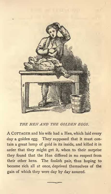 A woman is standing behind a table, holding a knife in her right hand. Her left hand is on her head, and her mouth is agape in sock as she looks down at the lifeless hen on the table. The hen is lying belly up and its stomach seems to have been cut open. There's a bucket in front of the table that seems to be empty.