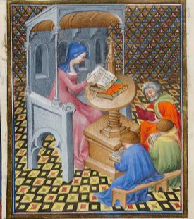 Sappho, à son pupitre, devant ses disciples