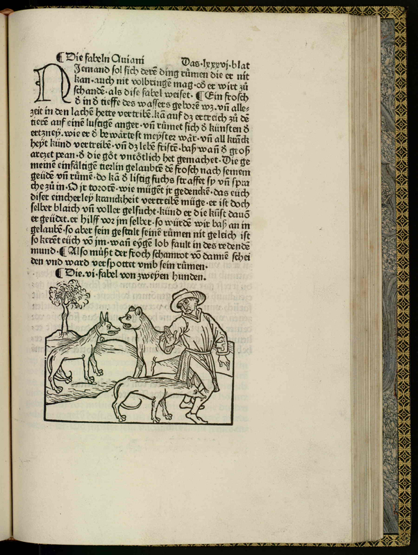 - A group of animals and a person stand near each other. One animal has decided to bite the persons leg while the other two animals are staring at each other.