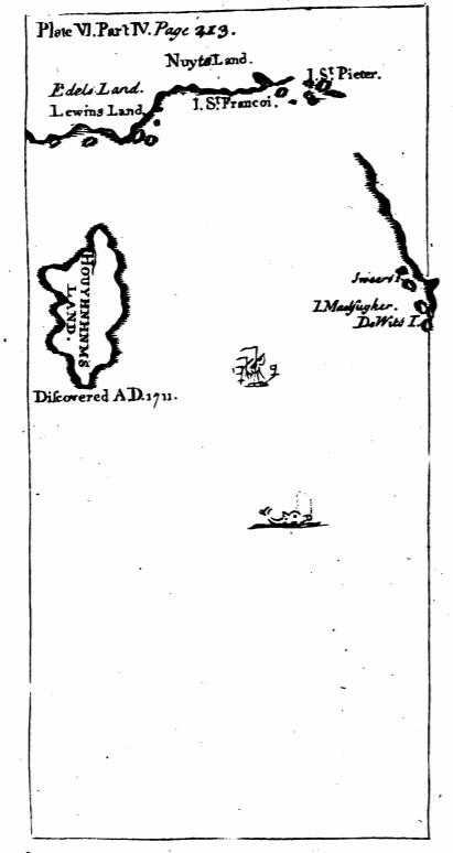 - Here we see a map of the Country of the Houyhnhnms. Written under the land is Discovered AD. 1711. The Houyhnhnms’ Land is shown near Nuyts Land and Eidels Land. A man-of-war style ship is shown in the water.