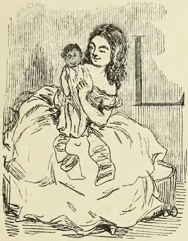 - Amelia Sedley is depicted holding a Black doll with curly hair, possibly representing Miss Rhoda Swartz, at which she gazes lovingly. Next to her, on the right side of the image, is the letter L from Love.