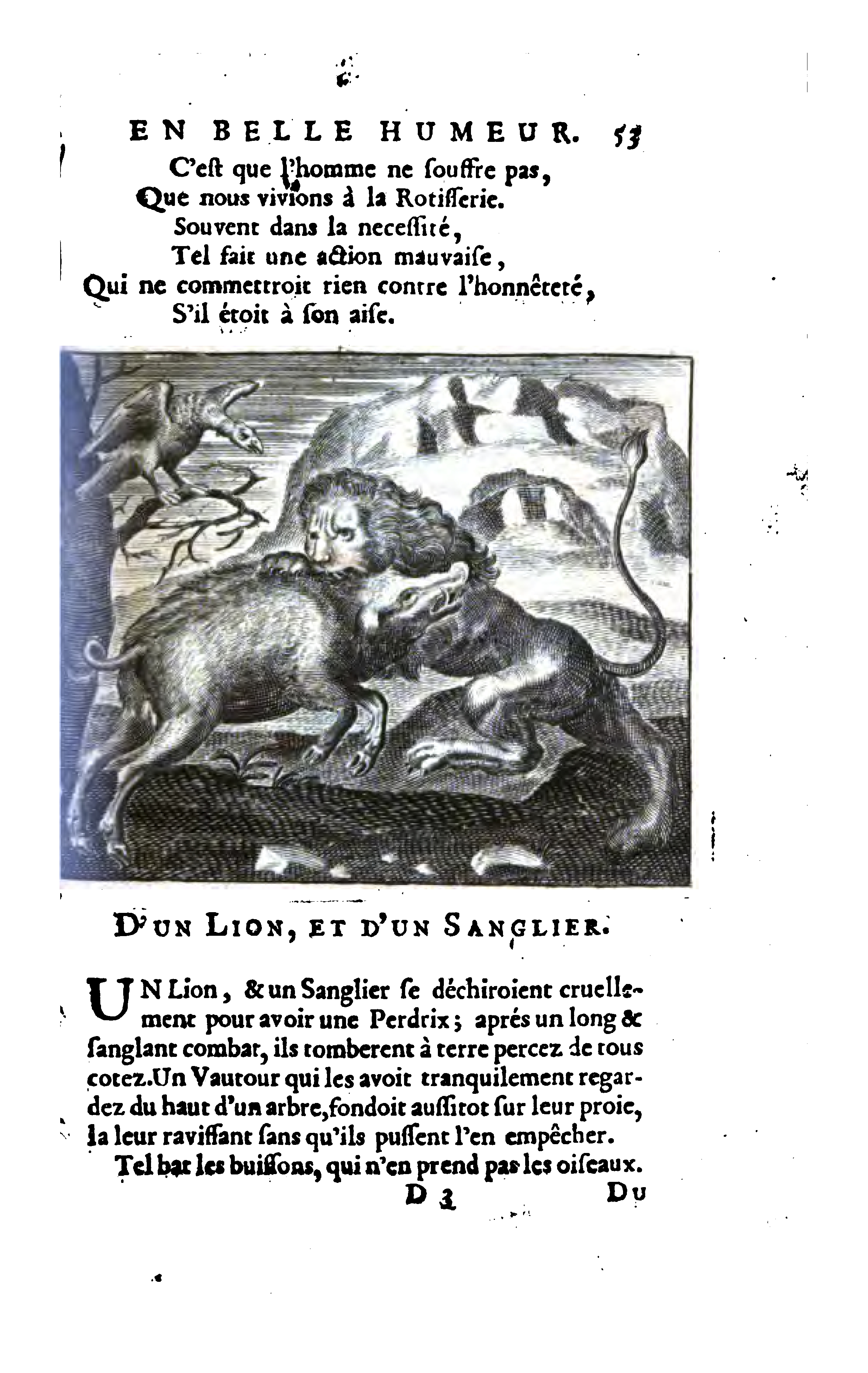 In this image there is a lion grabbing a boar by his neck. While the lion is expressing angry in his facial expression, the boar is expressing terror. There is a tree on the side and an eagle is sitting on top watching them and is ready to take off. There appears to be a lion's den in the background, under a mountain. This scenario is happening on a what appears to be a grass field.