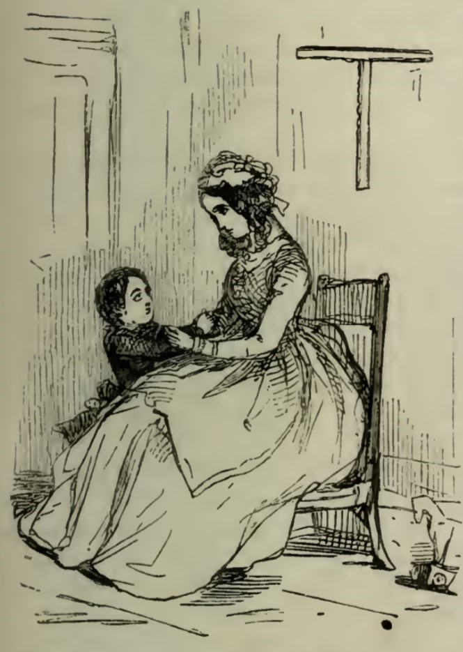 Lady Jane Crawley sits on a chair in the nursery, listening to her son’s morning prayers. Next to her chair is a toy horse, and above it the letter T from The.