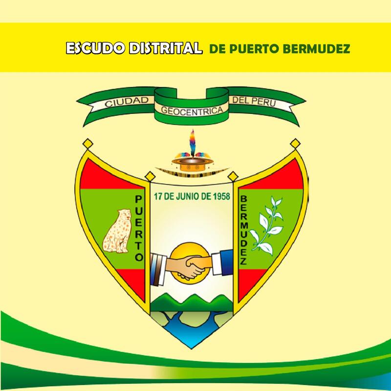 - ESCUDO DISTRITAL DE PUERTO BERMUDEZ CIUDAD GEOCENTRICA DEL PERU 17 DE JUNIO DE 1958 PUERTO BERMUDEZ