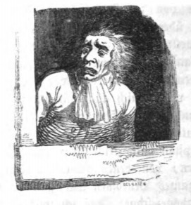 After arriving in Lisbon, Gulliver stayed with the captain of the ship that brought him from New Holland to Portugal, Don Pedro. Gulliver refused to go outside in Lisbon, so after arriving at Don Pedro’s house, he would look out the window, trying to readjust to life in Europe. Here we see Gulliver looking out the window terrified. Gulliver found readjusting to European life very difficult, because he became so accustomed to the Country of the Houyhnhnms and the virtue of the Houyhnhnms, that in Europe all he saw were the vices of humans. The same image appears in the 1843 Krabbe edition.