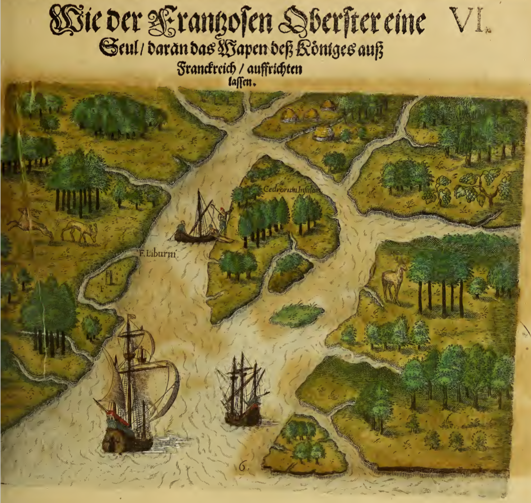 Der ander Theyl, der newlich erfundenen Landtschafft Americæ, Von dreyen Schiffahrten, so die Frantzosen in Floridam (die gegen Nidergang gelegen) gethan. Eine unter dem Hauptmann H. Laudonniere, Anno 1564. Die ander unter H. Ribald 1565. Die dritte, unter H. Guorguesio 1567. Geschehen.