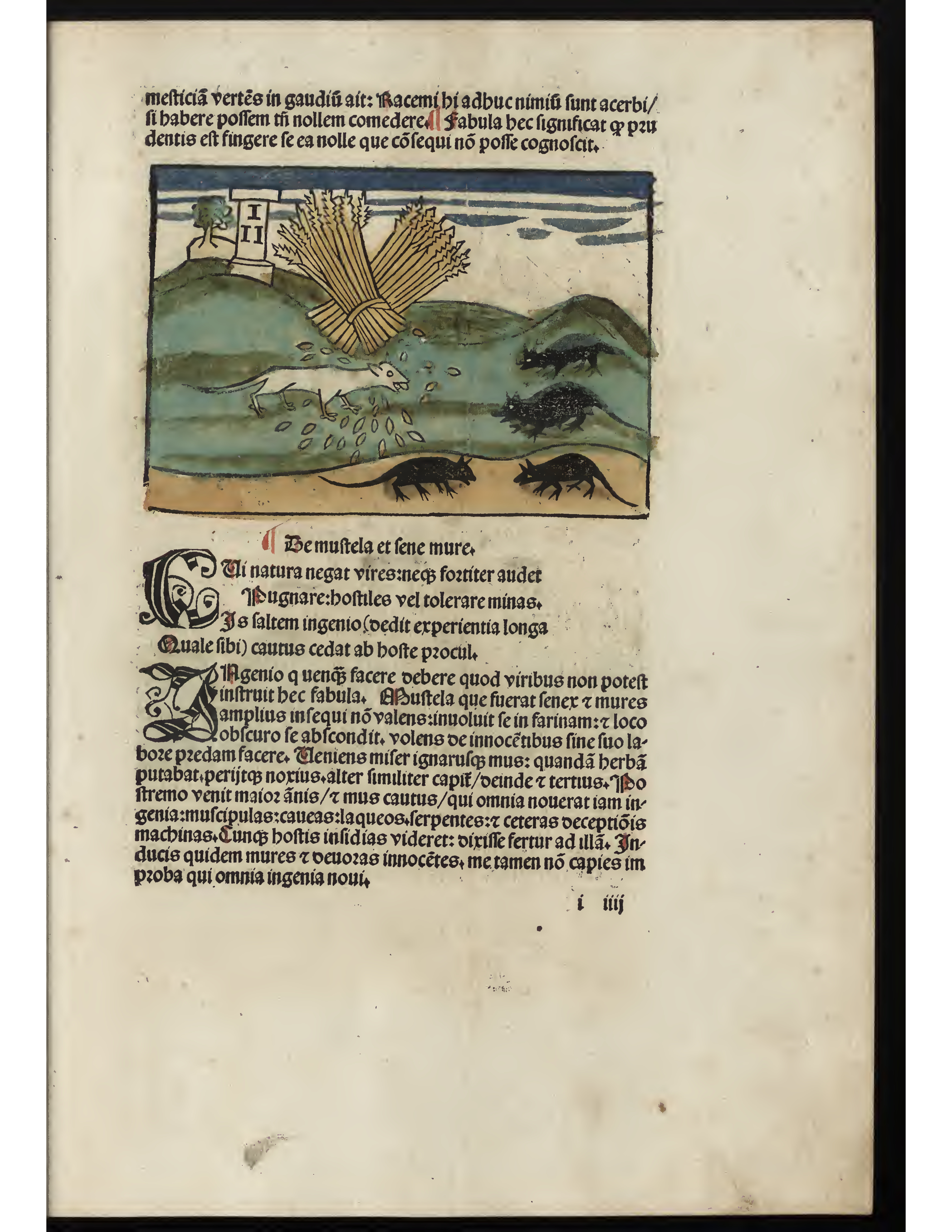 - To the right of the image there is a mouse, to the right of the mouse are four weasels. The mouse and weasels are surrounded by grass and hills. In the upper middle of the image there is a large bunch of wheat.