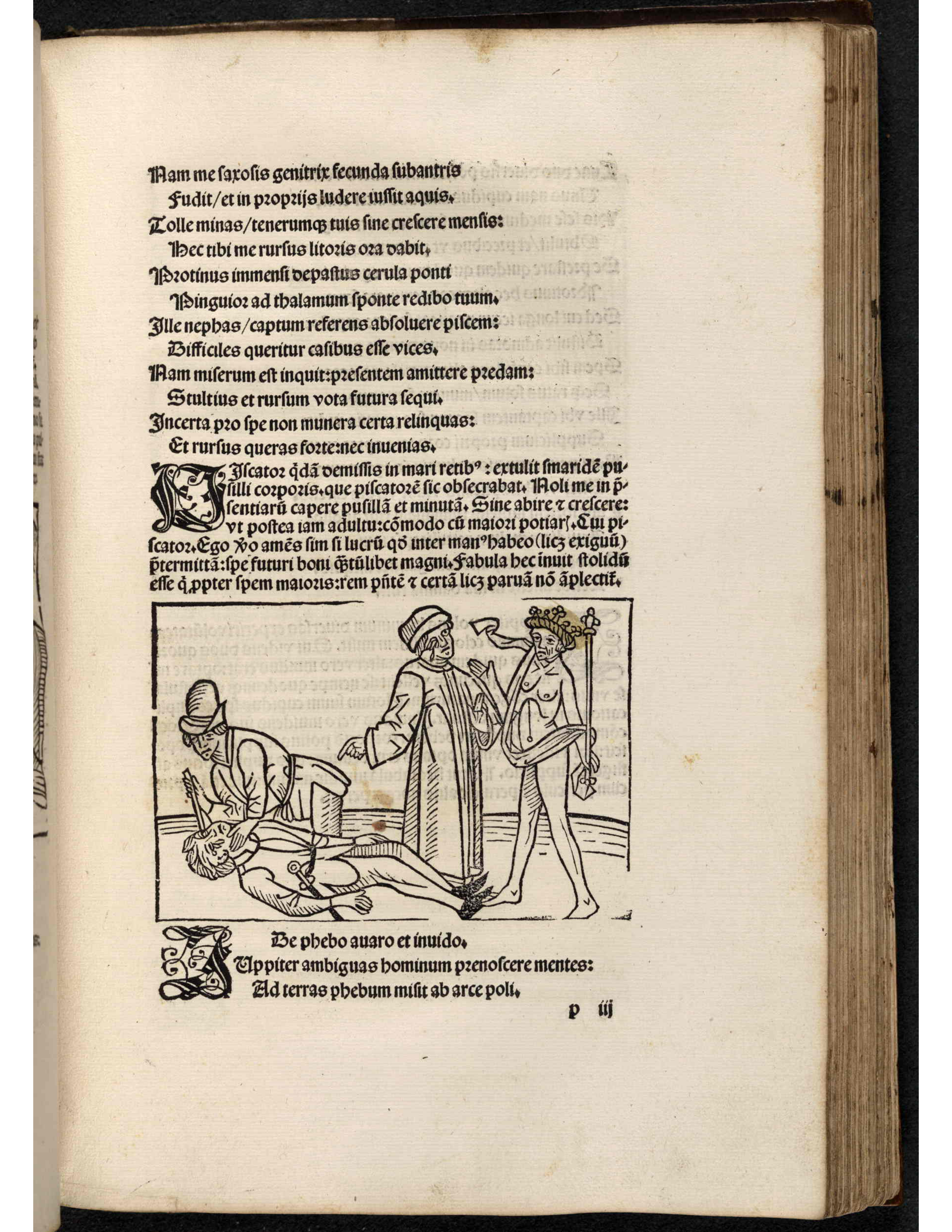 - There is a man lying down on the ground on the left side of the image. One of his eyes is bleeding. There is a man on top of him sticking a device in his left eye. In the centre of the image, there is a standing man with blood coming out of his right eye, talking to a king with a crown and a sceptre