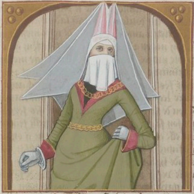 This illumination depicts a portrait of Sabina Poppaea, the wife of Emperor Nero. She is illustrated wearing a garment to cover her face and head and is pictured wearing heavy clothing. Boccaccio explains that Sabina Poppaea was modest when she was out in public, which is why she is depicted in this manner in the image. Sabina Poppaea was famous for using her cunning and beauty to seduce Nero into marrying her in order to be empress.