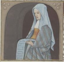 This illumination depicts a portrait of a Greek woman named Leontium. Boccaccio explains that Leontium was an intellectual scholar and philosopher and became renowned for criticizing and speaking against certain philosophers of her time. Boccaccio believes her fame was hindered by becoming a prostitute.