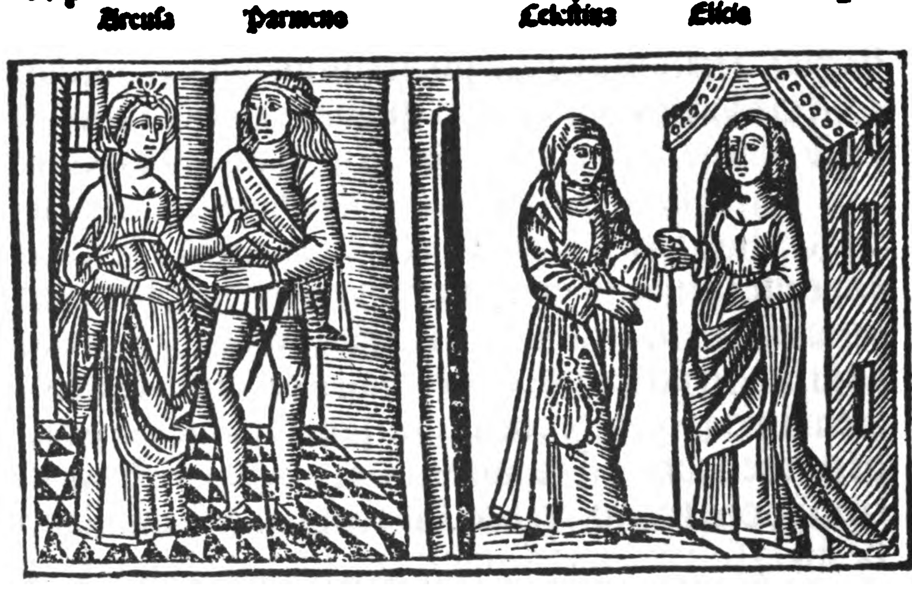 Celestina chastises Pármeno for murmuring during her encounter with Calisto and for opposing his own best interest (scamming Calisto), because it would negatively impact the outcome of all. She tells him that he needs to love if he wants to be loved, and offers him her prostitute Areusa in exchange for his loyalty. In this scene, we see Pármeno and Areusa having an intimate conversation, while Celestina talks with her other prostitute Elicia.