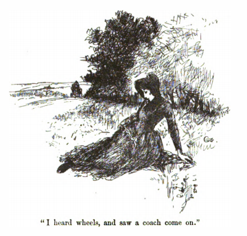Here Jane sits outside as a carriage drives towards her. She gathered all her money and got a carriage and rode until she ran out of money. The driver dropped her off by the side of the road and she walked until she reached the nearest village, Morton. She wandered outside for two days until she was taken in by the pastor, Mr. Rivers.