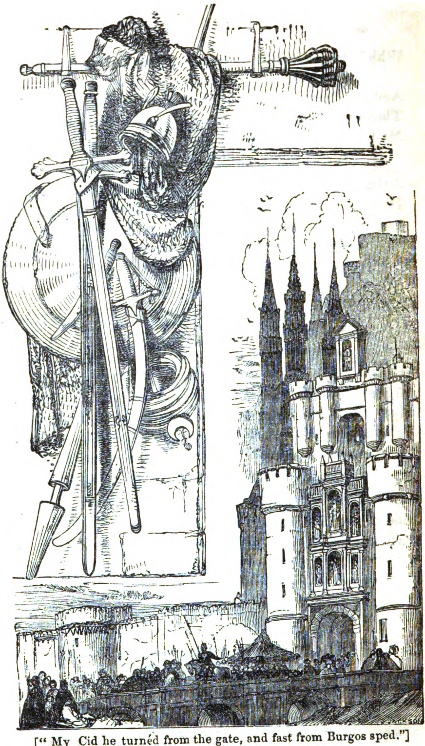My Cid he turned from the gate, and fast from Burgos sped.