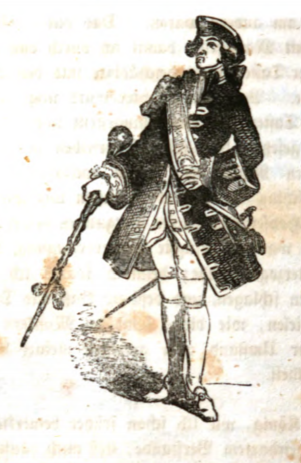 Gulliver is dressed in his finest clothes and carries a sceptre, as is the traditional formal attire in England. In this chapter Gulliver talks with the King of Brobdingnag about English traditions. Gulliver tells the King about diplomacy, religion, the justice system, the arts, the financial system, and the nobility, then debated these issues with the king. The same image appears in the 1843 Krabbe edition.