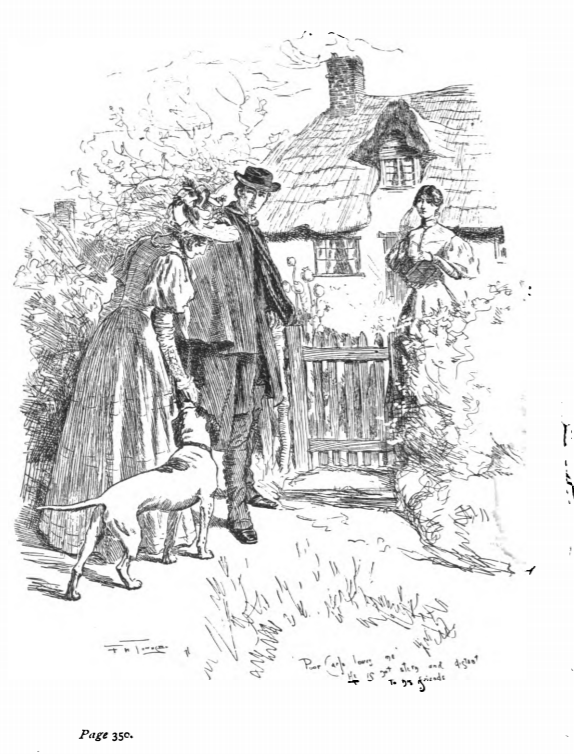 Here we see the River’s family outside of Moor House. In the center is St. John Rivers, with his sisters Mary and Diana and their dog. After Jane ran away from Thornfield, she ended up at Moor House, where she was taken in at Moor House. She later learned that they were cousins. The title appears in the contents of illustrations.